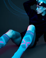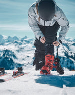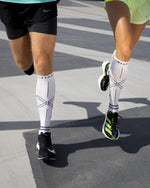 Person slides forward with his foot on a tennis court.