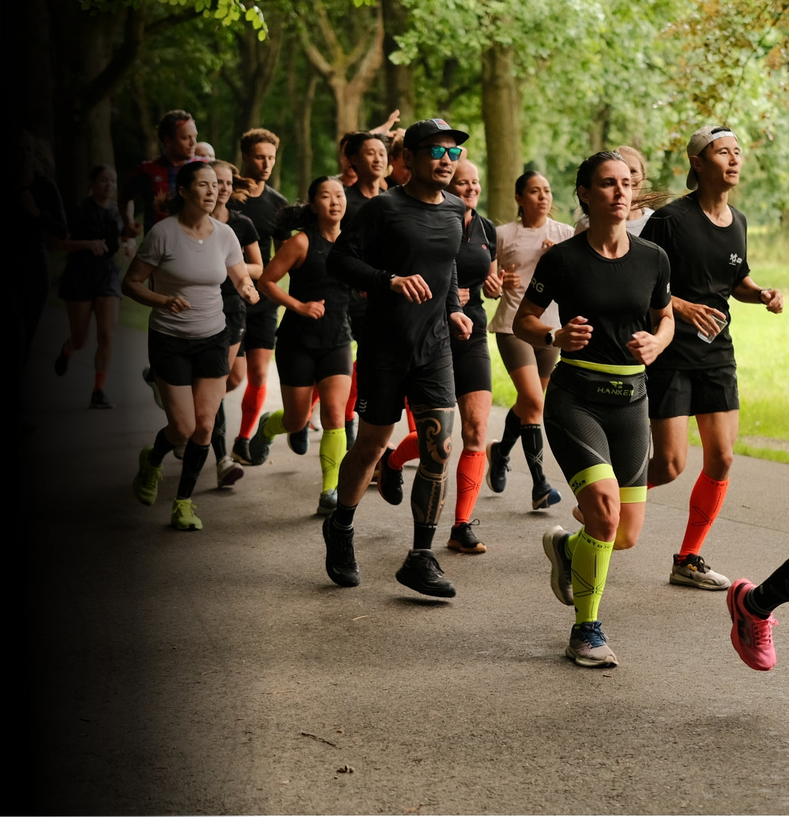 Die 12-km-Strecke, die vierzig Läufer weiter brachte als zuvor. Start am STOX-HQ, hinein ins Herz des Amsterdamer Bos und zurück, mit breiten Grinsen, vollen Mägen und einem eiskalten Bad für die Mutigen.