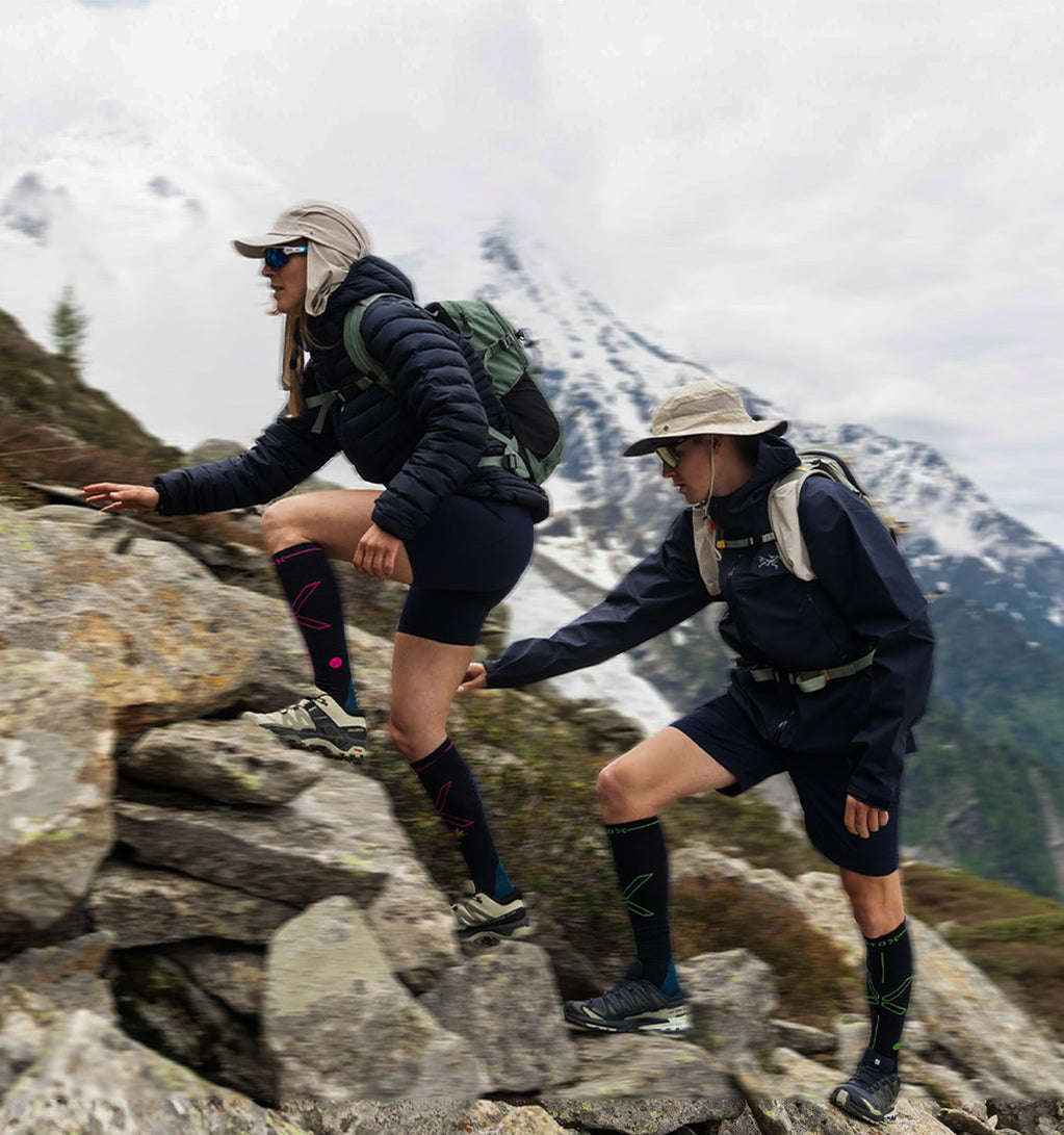 Crafted with Dryarn®, the world's lightest, most advanced microfiber. Fast evaporation for a dry, next-to-skin feel—even when the temperature soars. Improves circulation to keep your legs energized, allowing you to hike longer distances with less fatigue. Helps prevent fluid accumulation in the legs during prolonged activity, reducing swelling while also minimizing soreness, cramping, and the risk of shin splints.
