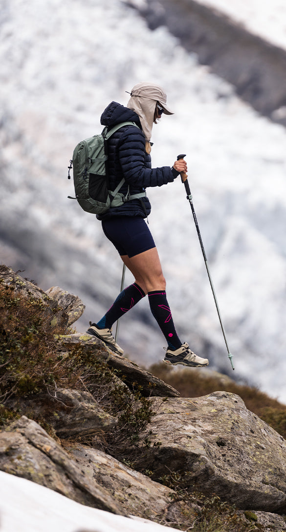 Our hiking socks are advanced compression socks, developed specifically for and with hikers, that stimulate blood circulation in the legs and maximize oxygen capacity of the muscles. Due to the improved removal of waste products in your legs, you will experience fewer complaints and more energy during and after a (long) hike.