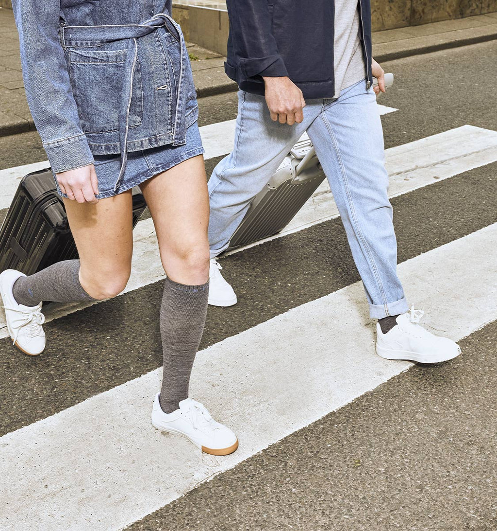 Travel socks are advanced compression socks that stimulate blood circulation in the legs and maximize oxygen capacity of the muscles. Due to the improved removal of waste products in your legs, you will experience fewer symptoms and more energy during and after a long (airline) trip.