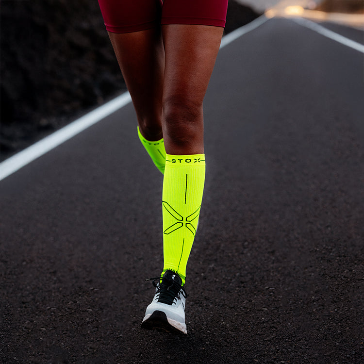 Avec STOX Energy Socks, vous subirez moins de blessures, de douleurs musculaires et accélérerez la récupération après l'entraînement. La compression graduée de nos chaussettes stimule la circulation sanguine dans vos jambes. Il en résulte un meilleur drainage de l'humidité et des fluides résiduaires. De cette façon, vous ressentez moins de jambes fatiguées, pendant et après l'exercice.