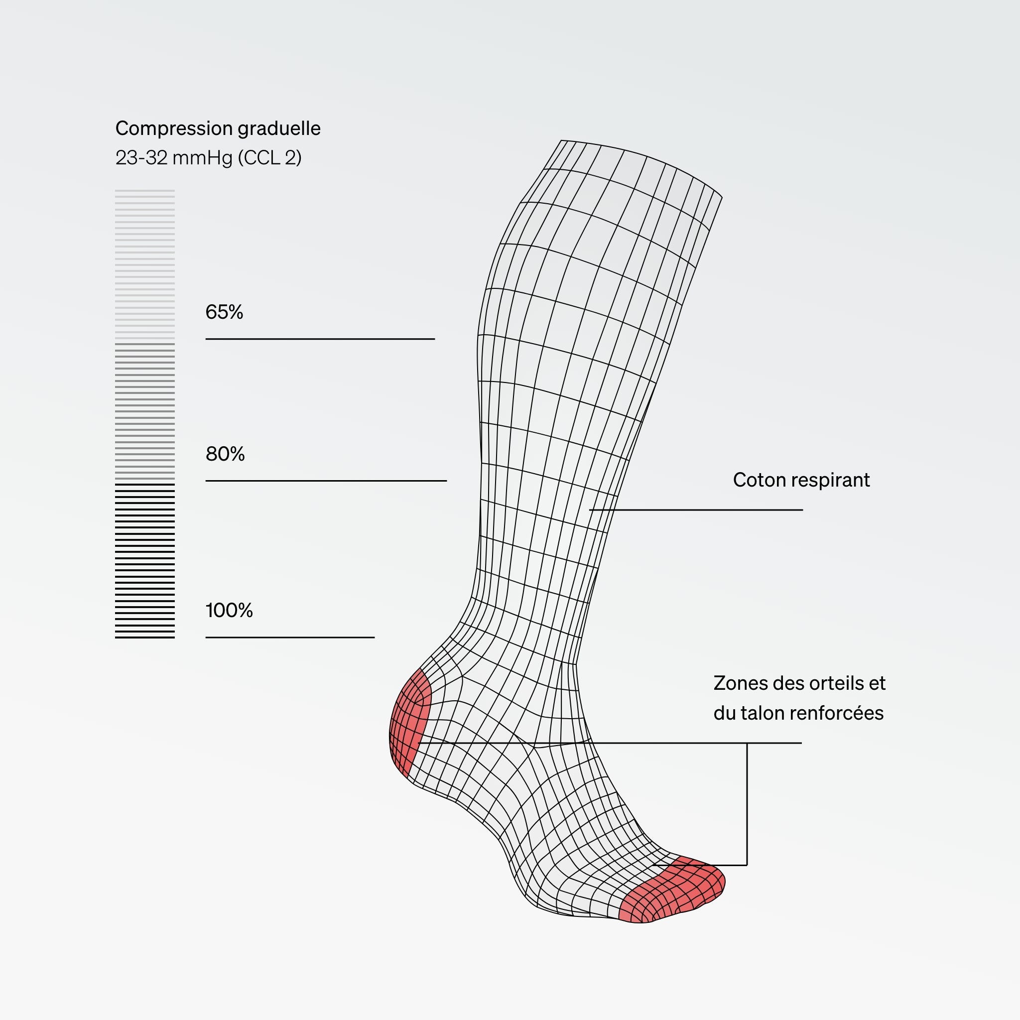 • Compression graduelle — 23-32 mmHg