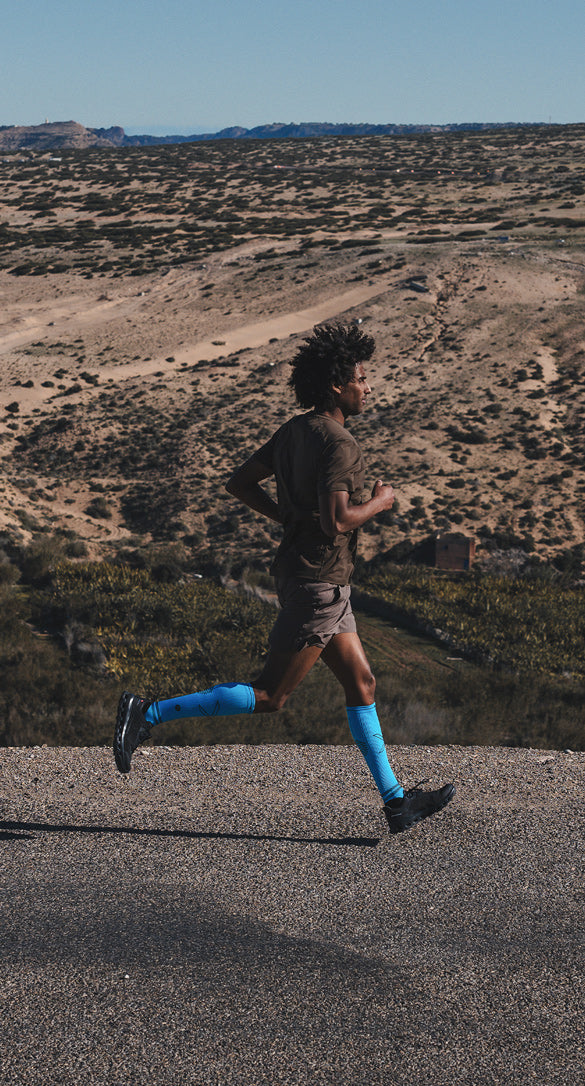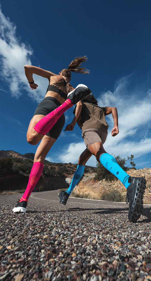 Onze hardloopsokken zijn geavanceerde compressiesokken, die speciaal zijn ontworpen om de bloedsomloop in de benen te stimuleren en de zuurstofcapaciteit naar de spieren te vergroten.