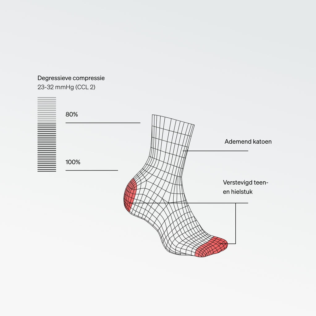 • Gerichte compressie — 23-32 mmHg (CCL 2)