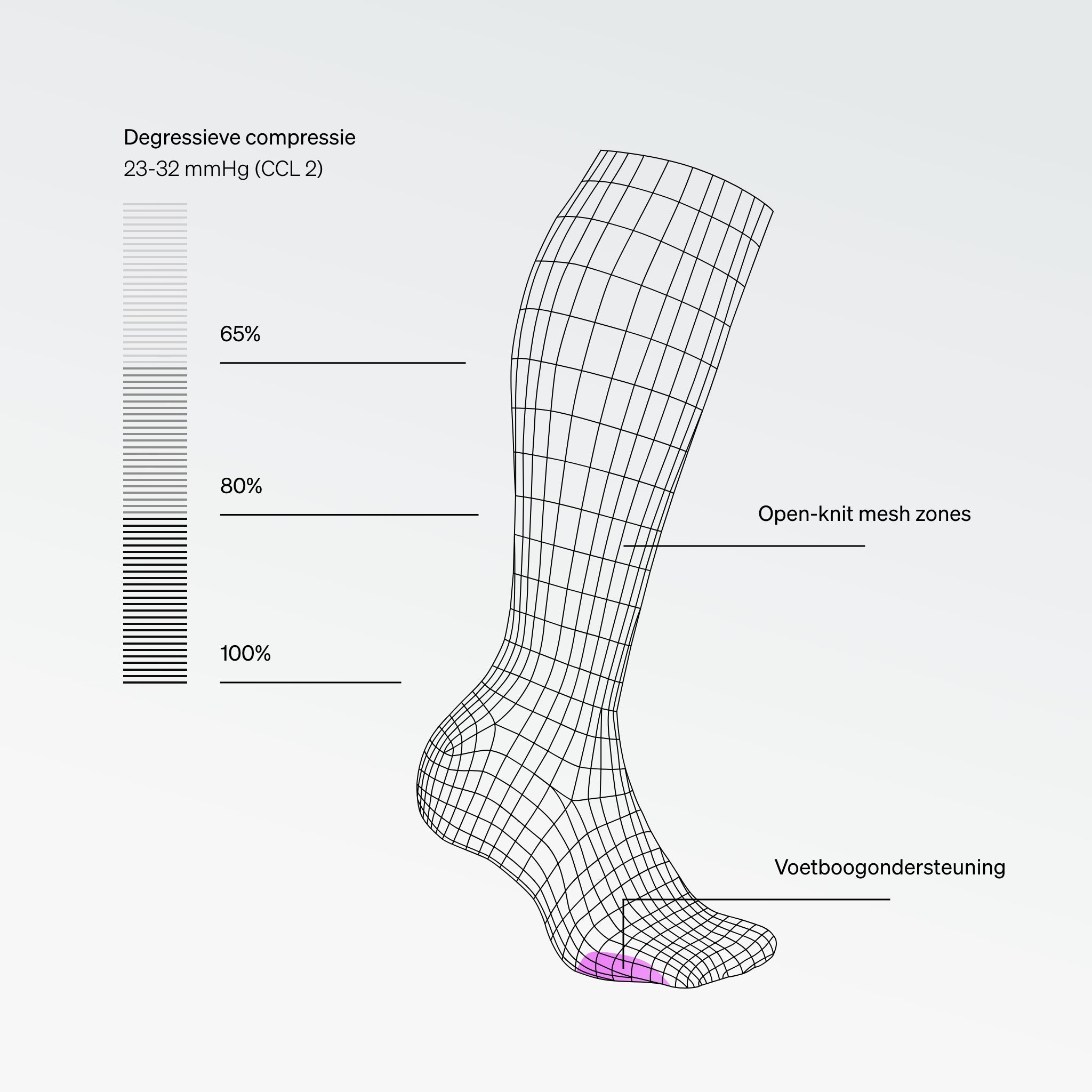Degressieve compressie stimuleert de doorbloeding en voert melkzuur sneller af.