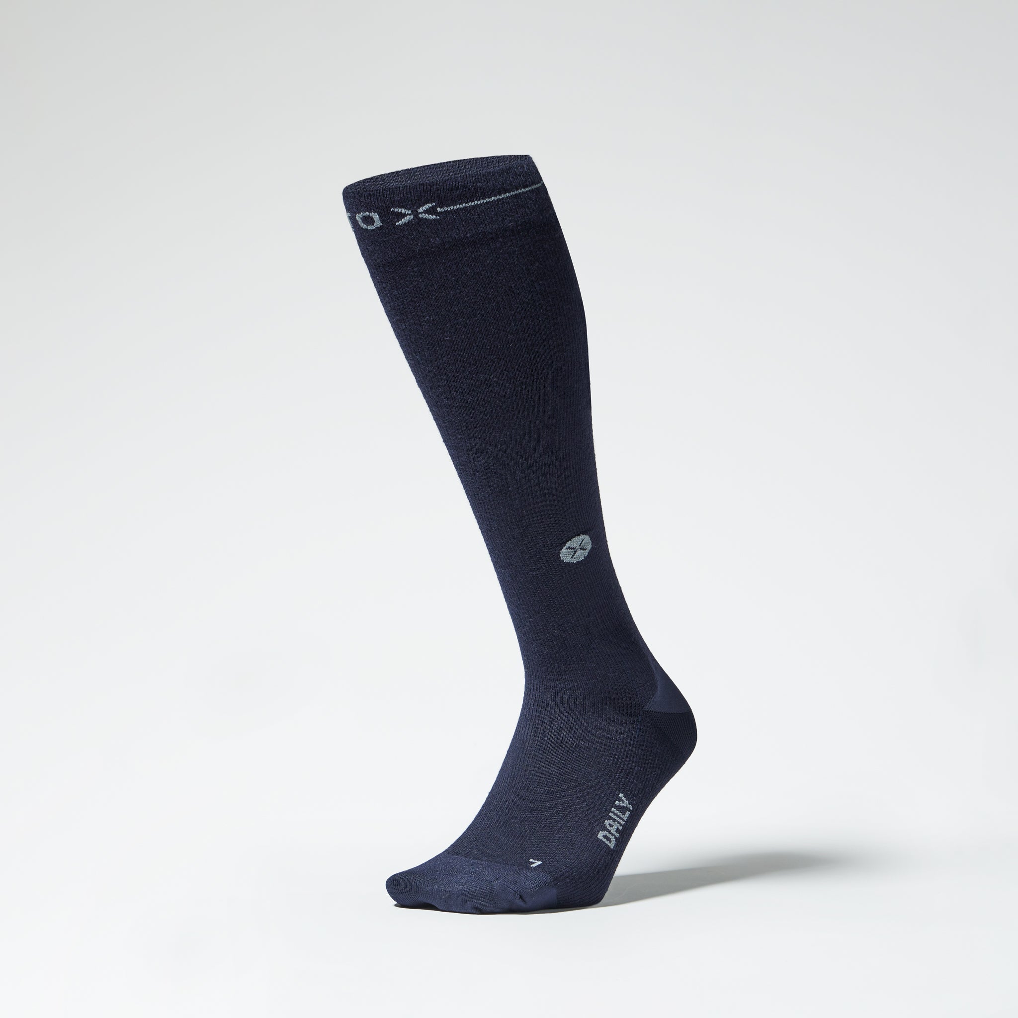 Heren compressiesokken voor dagelijks gebruik stimuleren de bloedsomloop om vermoeidheid, zwelling en spataderen te voorkomen. Gemaakt van temperatuurregulerend Merino wol.