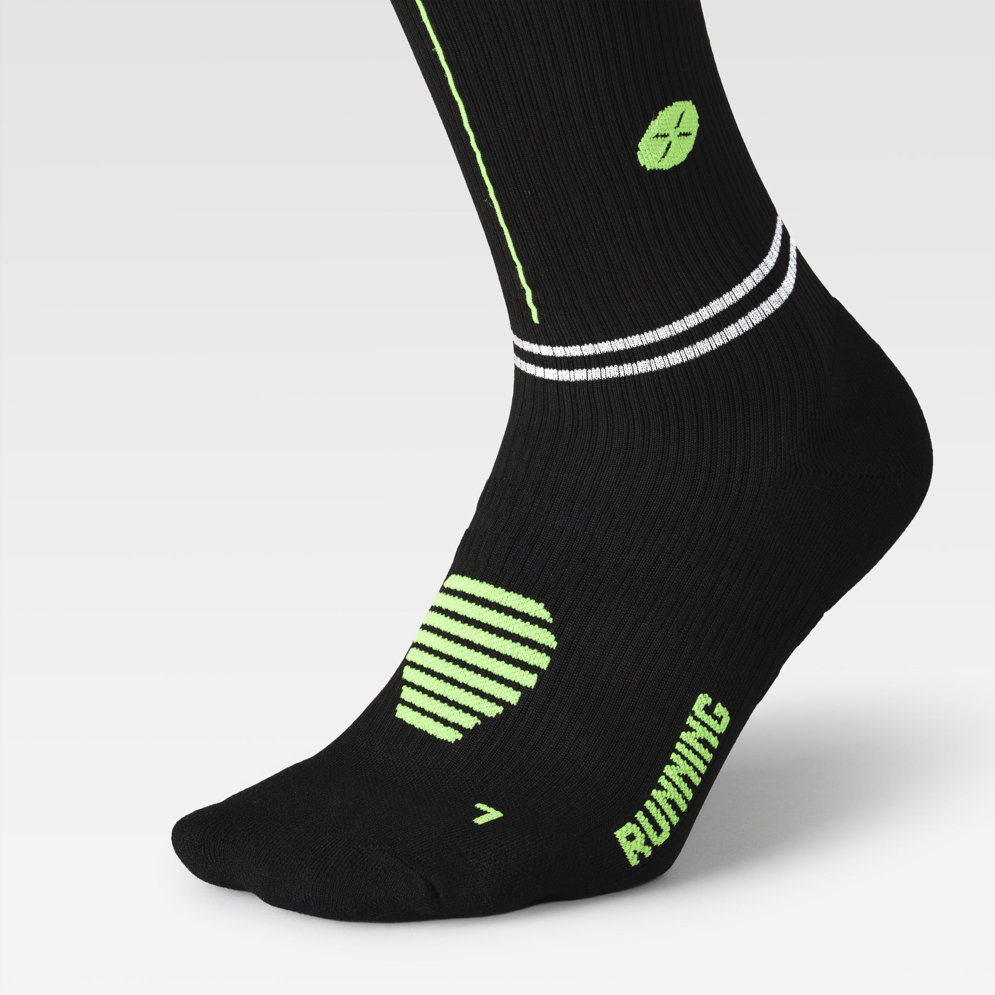 Onze high-vis hardloopcompressiesokken voor heren verbeteren de bloedcirculatie en verminderen shin splints en spiervermoeidheid. Reflecterende details zorgen voor 360° zichtbaarheid in het donker.