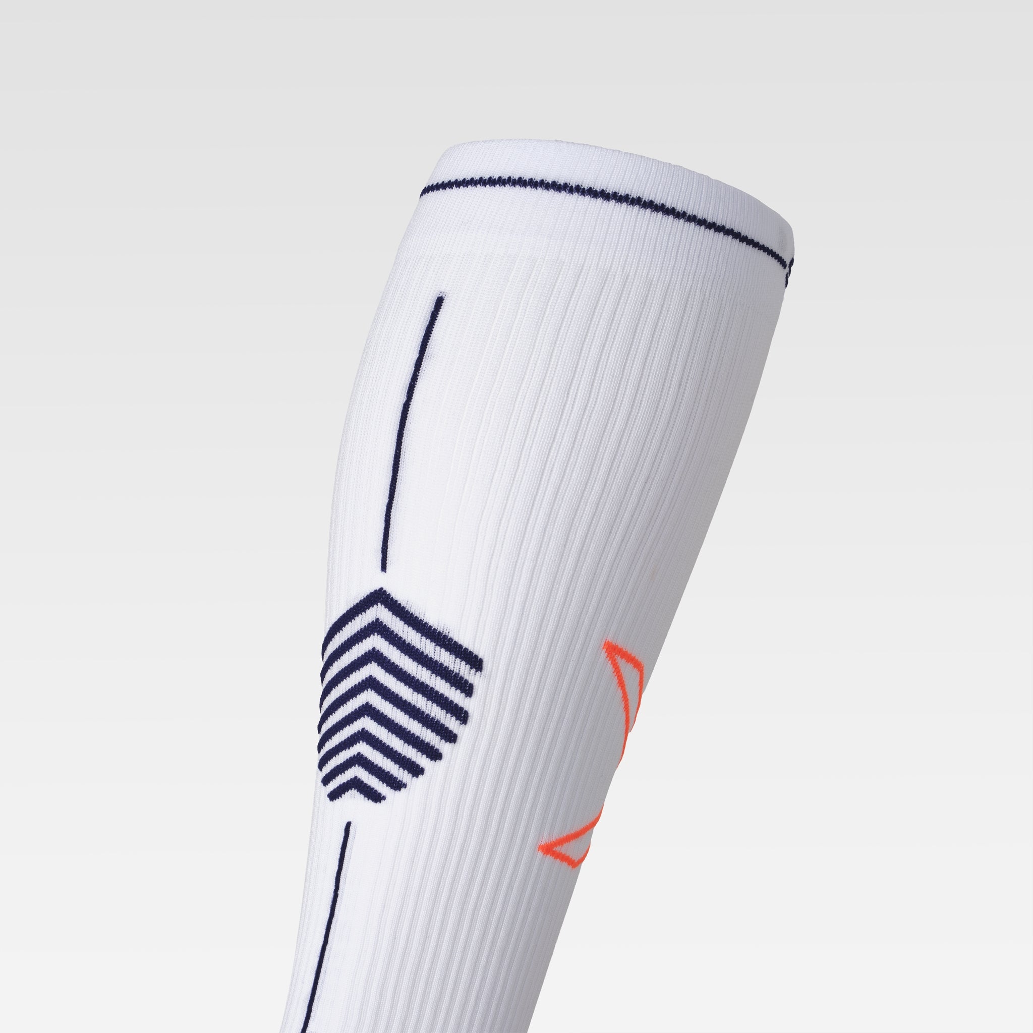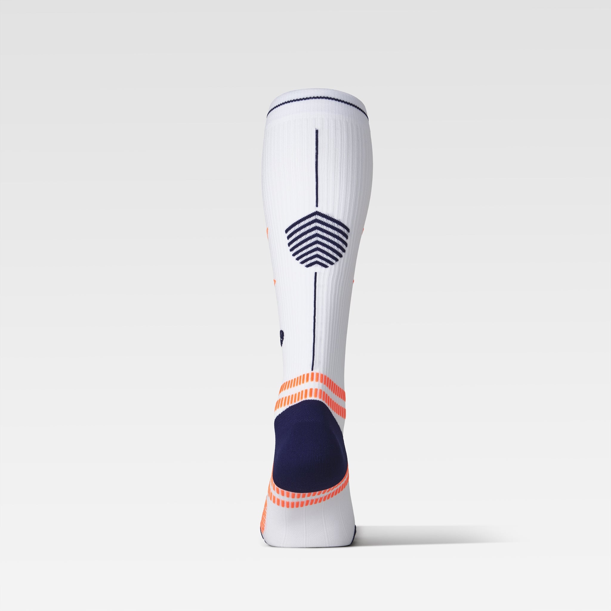 Our women's running compression socks enhance blood circulation, reducing shin splints & muscle fatigue. The padded toe and heel provide comfort & impact protection.